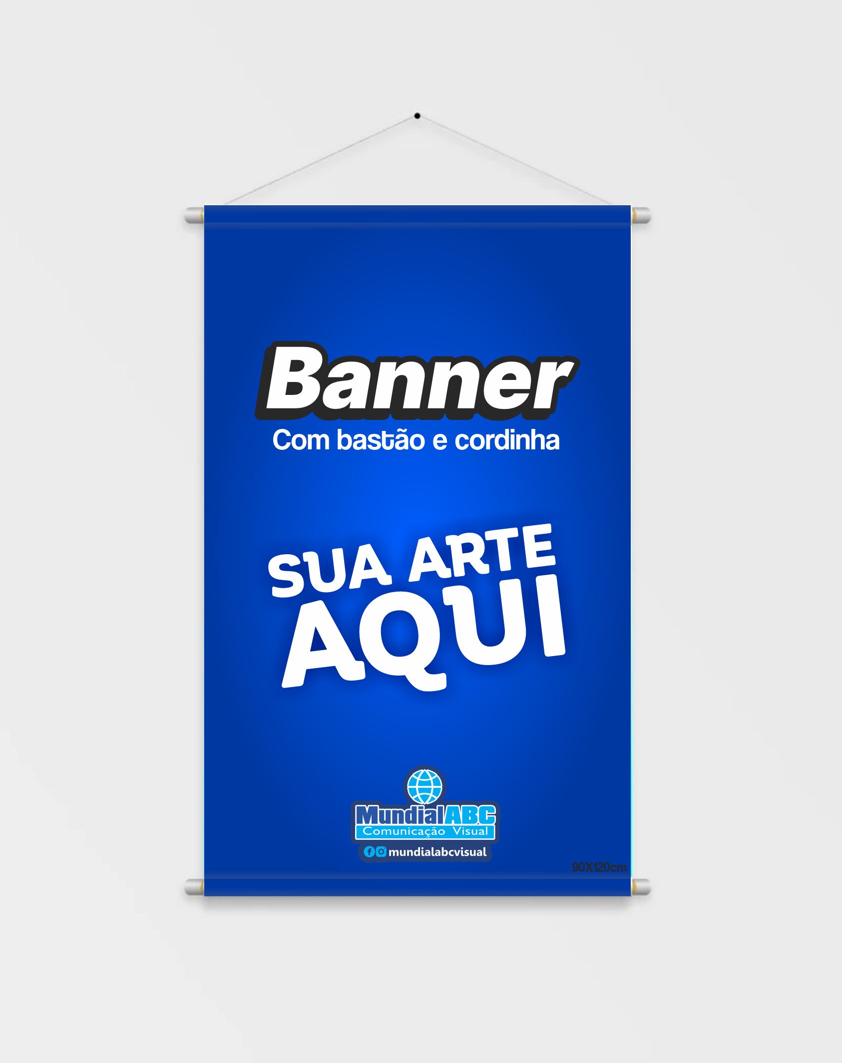 Produzido em lona resistente, com acabamento em madeira nas extremidades, ponteiras e corda superior, ele já vem pronto para pendurar — prático, bonito e profissional.